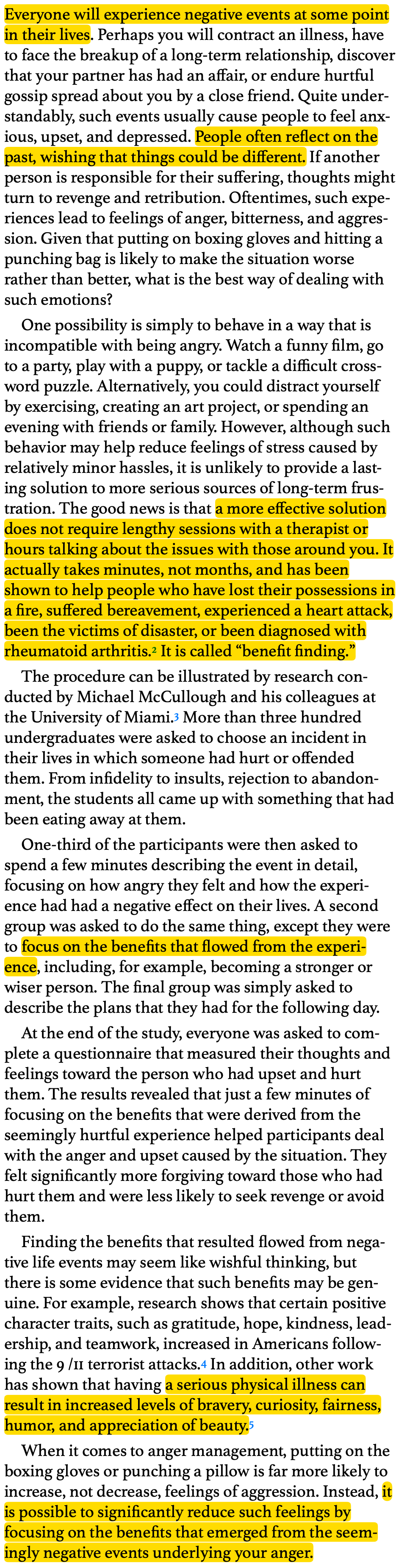 Reduce negative feelings by identifying positive changes and personal growth that emerged from difficult experiences in your life. (link)