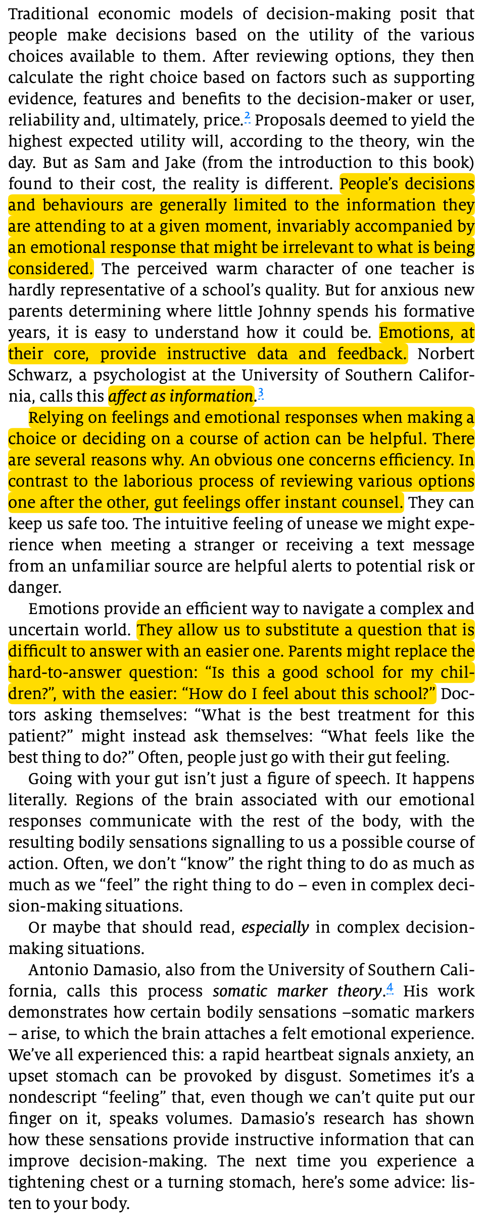 Your emotions and gut feelings is a source of data in you decisions. (link)